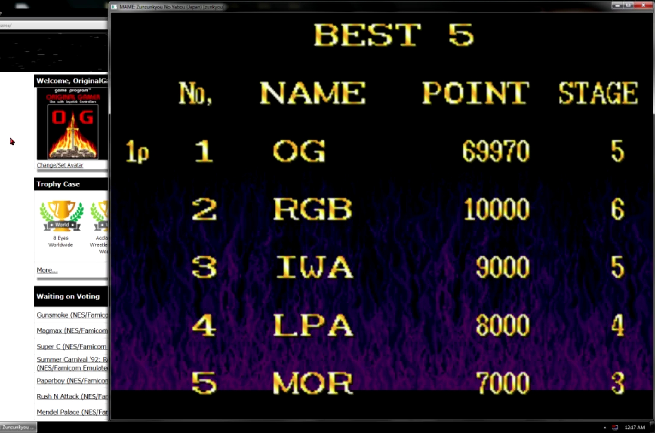 Play with default settings unless otherwise specified. If the ROM set is not mentioned, play the parent ROM. No use of trainers, cheats, saved game files, emulator save states or other emulator advantages. No use of code modifications that give the player an advantage over other players. 1 player only. No continues. In-game/internal autofire is only allowed if a game has it (enabled through hard or soft DIPs). External/MAME/cheat-based autofire is not allowed. It is discouraged and may lead to voters not accepting your score to - excessively point farm - use glitches or other game exploits You can use any emulator you want (Retropie, rain, neo geo, Coinops, Antstream, handhelds,...). If specific emulators or versions are restricted, it will be mentioned in the Specific rules. For Top 3 we encourage (but NOT mandatory) to provide: a) A full video with DIP Switches to be shown in the video (at the start or at the end of your performance). If DIP Switches are not available, Service Menu should be used instead (at the start of your performance). If no difficulty settings is available on your game, you still have to show either DIP switches or service mode showing this (if not mentioned in the specific rules). OR b) An INP file. Please state your MAME version in the comments. And add an URL where the voter can download your .inp. (We currently have no way to store those files on the server, but it is on the roadmap). For INPs: o We encourage to also show the DIPs during your video play. o Delete NVRAM before recording/viewing. Many arcade games that MAME emulates save some information (like high scores) in non-volatile ram (NVRAM), which by default MAME saves in the nvram subfolder. For some games (not all) the RNG is affected by NVRAM, so an .inp file recorded with non-empty nvram won't replay correctly on anyone else's system. o To record INP file, you require Wolfmame: You can download it here : https://github.com/mahlemiut/wolfmame/releases (or on MARP). o Record one run gameplay when using INP. |