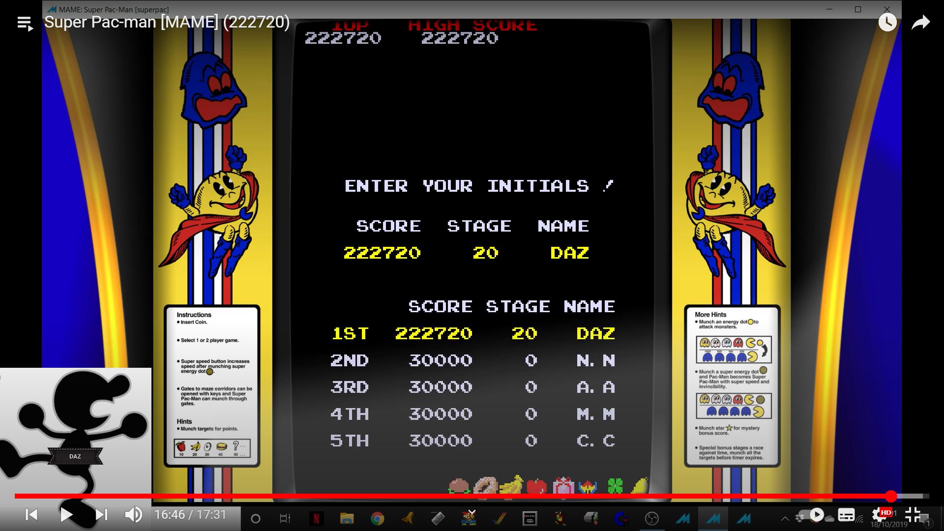 Play with default settings unless otherwise specified. If the ROM set is not mentioned, play the parent ROM. No use of trainers, cheats, saved game files, emulator save states or other emulator advantages. No use of code modifications that give the player an advantage over other players. 1 player only. No continues. In-game/internal autofire is only allowed if a game has it (enabled through hard or soft DIPs). External/MAME/cheat-based autofire is not allowed. It is discouraged and may lead to voters not accepting your score to - excessively point farm - use glitches or other game exploits You can use any emulator you want (Retropie, rain, neo geo, Coinops, Antstream, handhelds,...). If specific emulators or versions are restricted, it will be mentioned in the Specific rules. For Top 3 we encourage (but NOT mandatory) to provide: a) A full video with DIP Switches to be shown in the video (at the start or at the end of your performance). If DIP Switches are not available, Service Menu should be used instead (at the start of your performance). If no difficulty settings is available on your game, you still have to show either DIP switches or service mode showing this (if not mentioned in the specific rules). OR b) An INP file. Please state your MAME version in the comments. And add an URL where the voter can download your .inp. (We currently have no way to store those files on the server, but it is on the roadmap). For INPs: o We encourage to also show the DIPs during your video play. o Delete NVRAM before recording/viewing. Many arcade games that MAME emulates save some information (like high scores) in non-volatile ram (NVRAM), which by default MAME saves in the nvram subfolder. For some games (not all) the RNG is affected by NVRAM, so an .inp file recorded with non-empty nvram won't replay correctly on anyone else's system. o To record INP file, you require Wolfmame: You can download it here : https://github.com/mahlemiut/wolfmame/releases (or on MARP). o Record one run gameplay when using INP. |