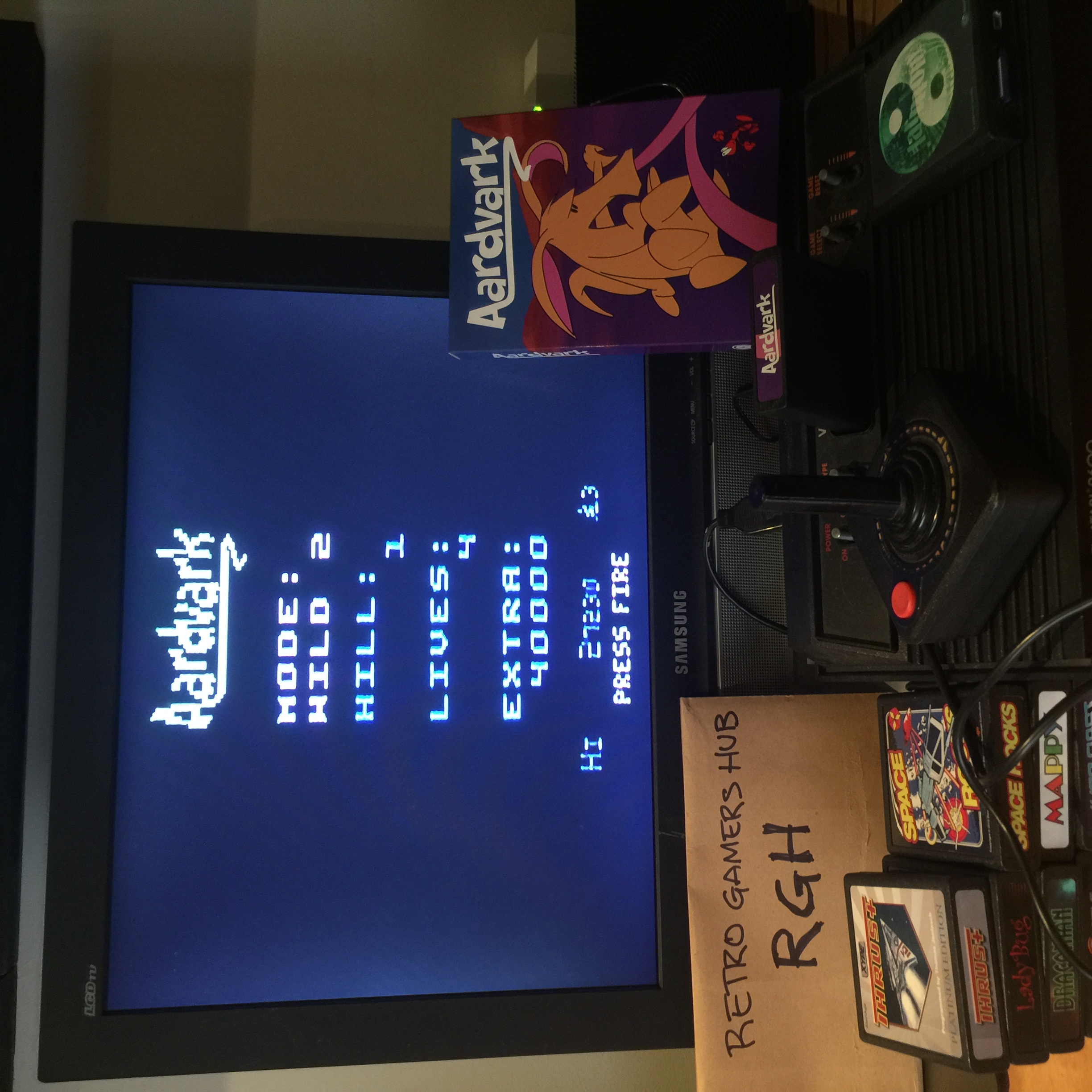 ⚙️ Game mode: WILD 2 ⚙️ Hill: 1 ⚙️ Lives: 5 ⚙️ Extra: 20,000 ⏸ Color/BW switch pauses game. Pausing using this method is ALLOWED. ⏪ Left difficulty switch setting has no effect in this title, and can therefore be in any position at any time. ⏩ Right difficulty switch setting has no effect in this title, and can therefore be in any position at any time. 🔄 Rollover: 1,000,000 ✒️ Oscar G. Toledo, Thomas Jentzsch, Nathan Strum ©️ Self-published 🗓 2019 🕹 ROM was publicly released by its author, and can be obtained here: 💾 https://forums.atariage.com/blogs/entry/17333-my-roms-for-download/#findComment-28240 💲 Purchase a cartridge here: https://store.atariage.com/products/aardvark-atari-2600 F 1.12.25 |