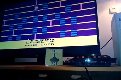 Switch settings on an Aari Flashback 8 console are hard to demonstrate. However the use of the the correct difficulty setting can be observed in the video (see special rules: flashing girders: B/Novice). Good run starts with selection of standard game at 5:53'. Final score at 8:31'. Thanks for watching!