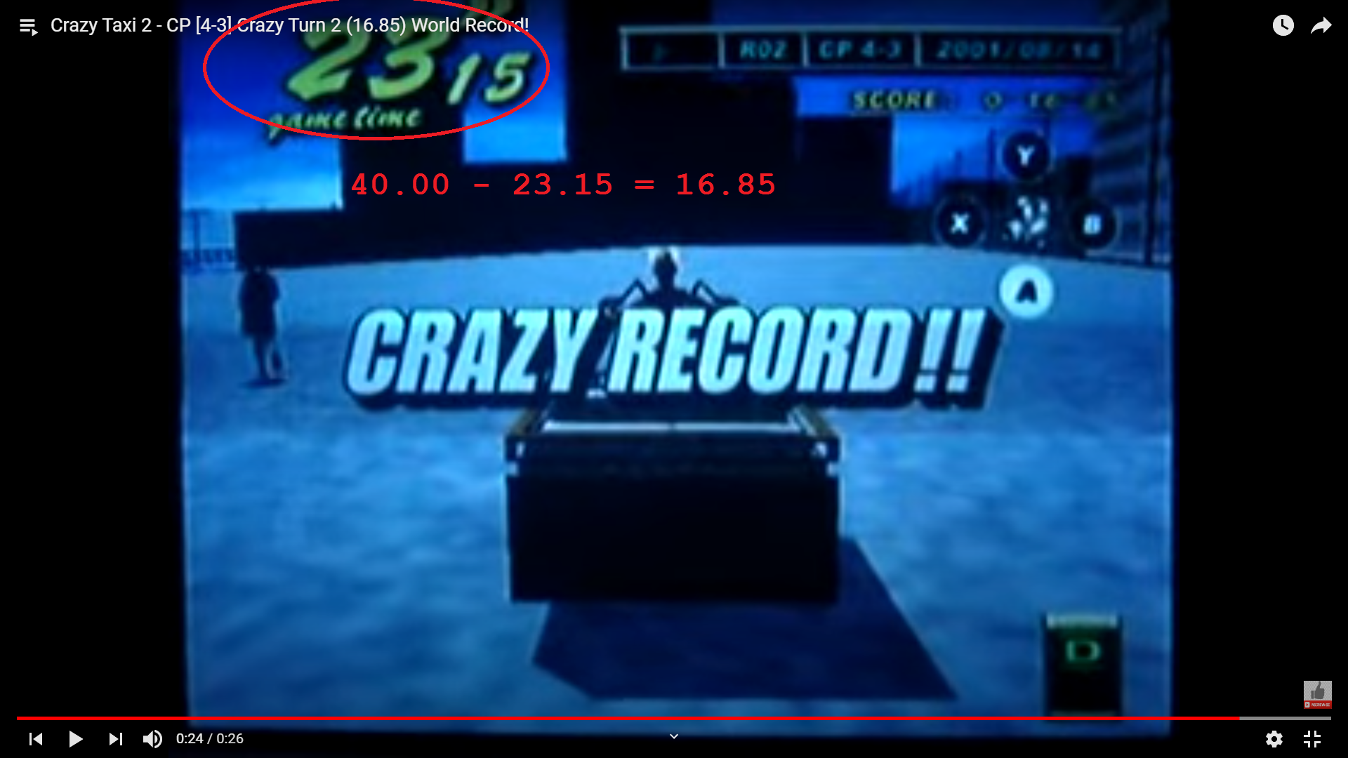 Crazy Taxi and Crazy Taxi 2 records have been done in 2001 during Crazy Taxi World Championships, that records is my most old records of my archives, a relic never submitted before. Please, be patience is some videos, they was recorded during the event and the quality is not good. Thanks