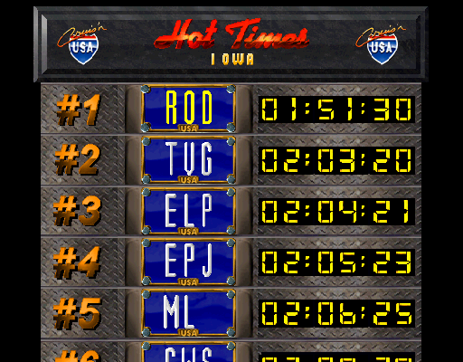Play the game in 1 player mode with default settings. Player can choose any car. Player can use credits to continue to play while cruising the USA |