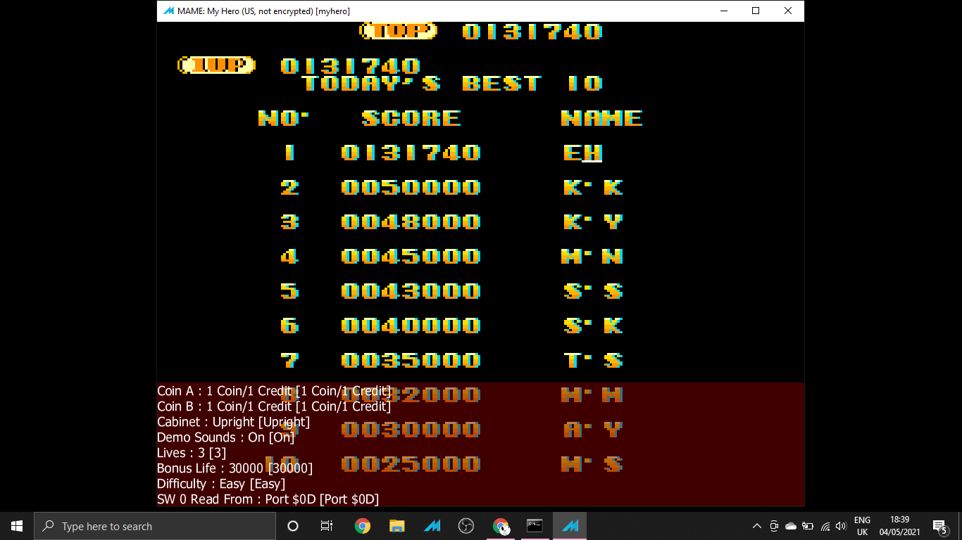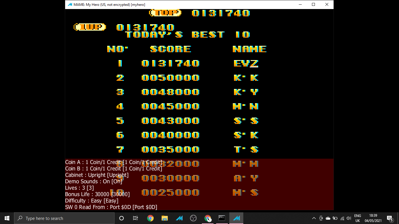 Play with default settings unless otherwise specified. If the ROM set is not mentioned, play the parent ROM. No use of trainers, cheats, saved game files, emulator save states or other emulator advantages. No use of code modifications that give the player an advantage over other players. 1 player only. No continues. In-game/internal autofire is only allowed if a game has it (enabled through hard or soft DIPs). External/MAME/cheat-based autofire is not allowed. It is discouraged and may lead to voters not accepting your score to - excessively point farm - use glitches or other game exploits You can use any emulator you want (Retropie, rain, neo geo, Coinops, Antstream, handhelds,...). If specific emulators or versions are restricted, it will be mentioned in the Specific rules. For Top 3 we encourage (but NOT mandatory) to provide: a) A full video with DIP Switches to be shown in the video (at the start or at the end of your performance). If DIP Switches are not available, Service Menu should be used instead (at the start of your performance). If no difficulty settings is available on your game, you still have to show either DIP switches or service mode showing this (if not mentioned in the specific rules). OR b) An INP file. Please state your MAME version in the comments. And add an URL where the voter can download your .inp. (We currently have no way to store those files on the server, but it is on the roadmap). For INPs: o We encourage to also show the DIPs during your video play. o Delete NVRAM before recording/viewing. Many arcade games that MAME emulates save some information (like high scores) in non-volatile ram (NVRAM), which by default MAME saves in the nvram subfolder. For some games (not all) the RNG is affected by NVRAM, so an .inp file recorded with non-empty nvram won't replay correctly on anyone else's system. o To record INP file, you require Wolfmame: You can download it here : https://github.com/mahlemiut/wolfmame/releases (or on MARP). o Record one run gameplay when using INP. |