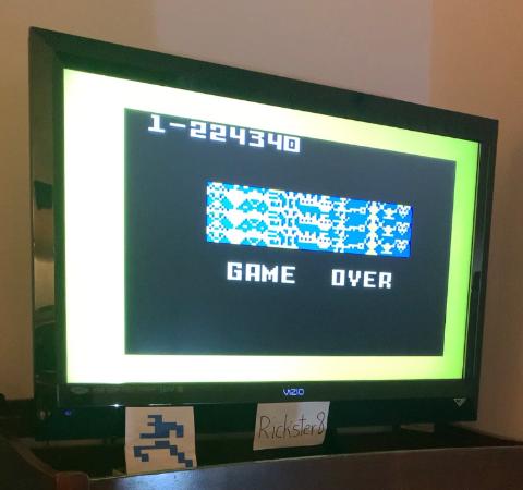 This is my submission for Venture on the Intellivision, Skill Level 2, My best final score was 879,700 points (655,360 x 1 = 655,360 + 224,340 = 879,700). Based on the pics included the score is added up like this, (596,200 + 138,600 + 224,340 - 79,440 = 879,700) The game rolls over to zero at the score of 655,360. There is 1 scoring rollover in this game and it occurs at the 15:45 mark of the video. Boot up occurs at the beginning of the video. The 'GAME OVER' words occur at the 17:30 mark, but the final score has to be added up due to the roll over. Hardware shown at the end, power was on and the Venture cartridge was shown. Reset done and power switched off at the very end of the video. Thx