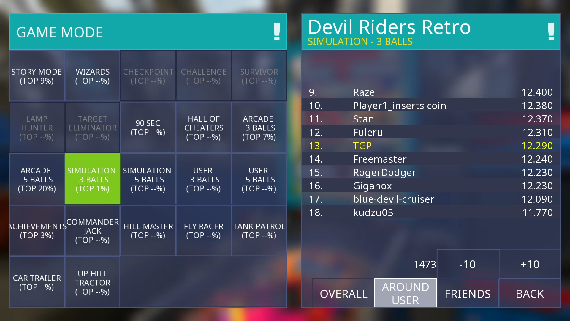 Playing the Devil Riders Retro table of Zaccaria Pinball in Simulation Mode with 3 balls. Date of play was the 3rd June 2021 and score reached was 12,290. It's top 20, but try as I might I can't get into the top 10.