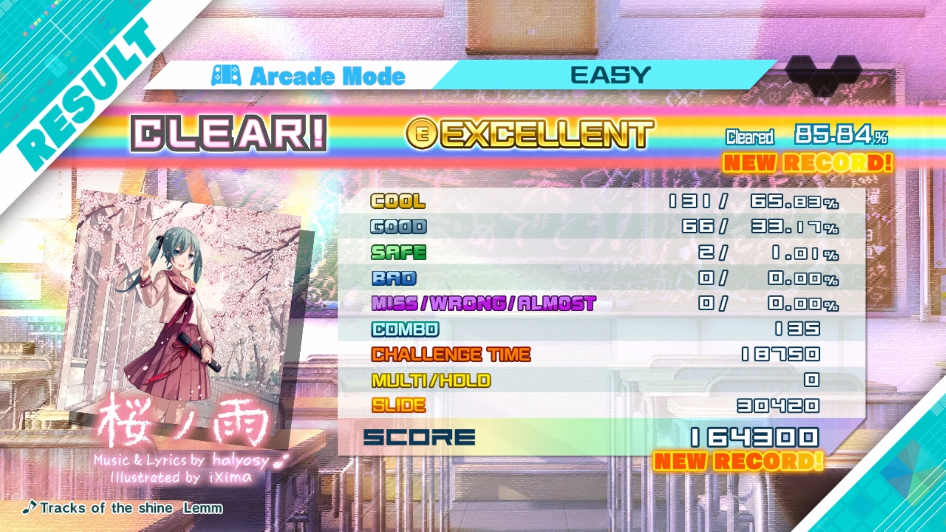 Hardware assumed from video start sequence, game checked, Arcade mode checked, Song and Easy skill checked, gameplay checked, score checked.