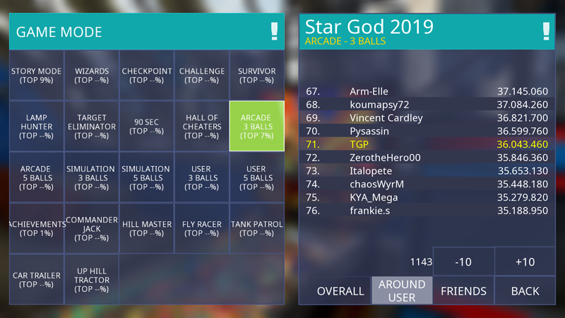 08:30 Global leaderboard. Check table, game mode, ball count, score and global position here.