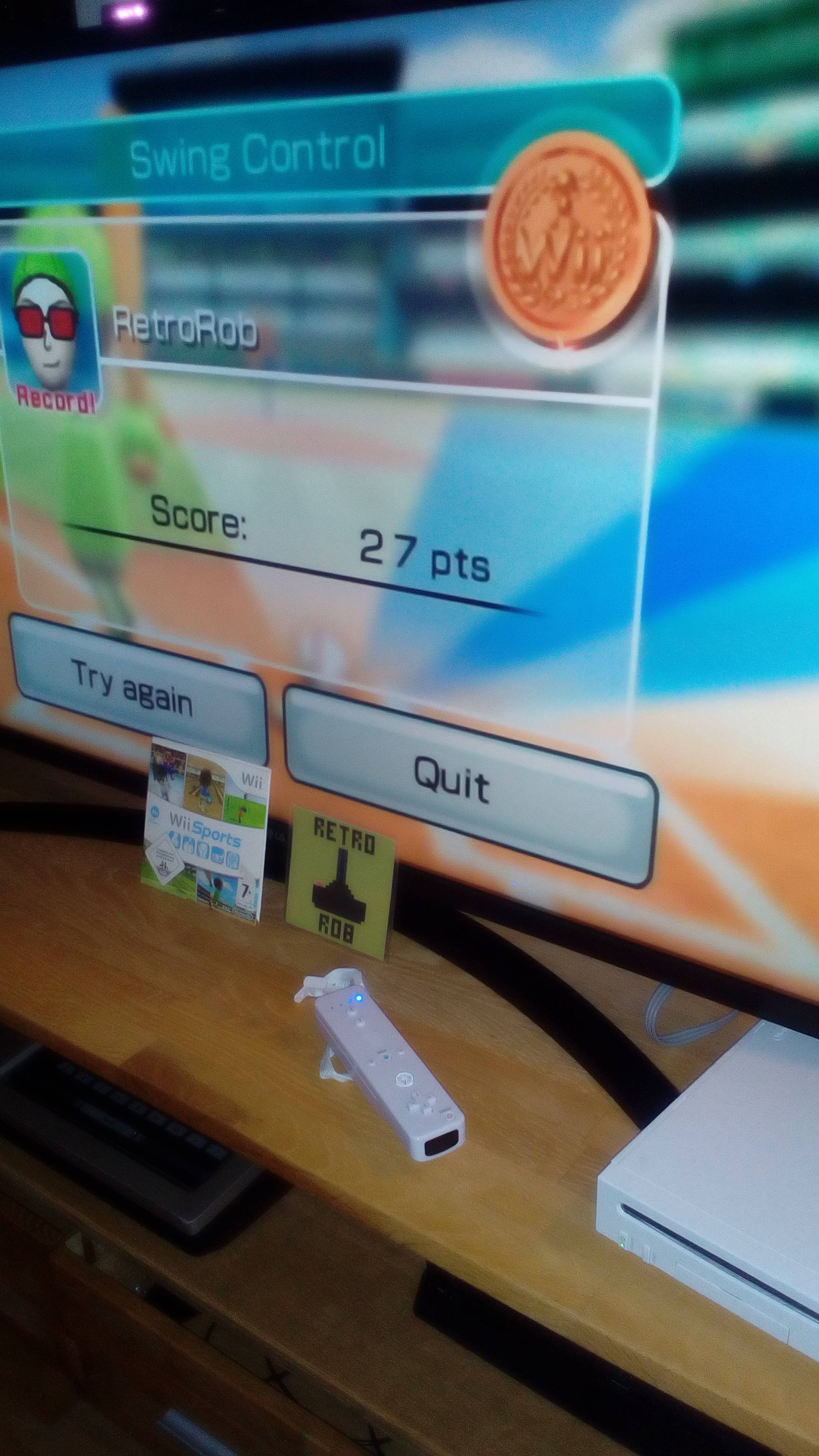 Hardware checked, game checked, Baseball selected checked, Swing Control checked, gameplay checked, score checked.