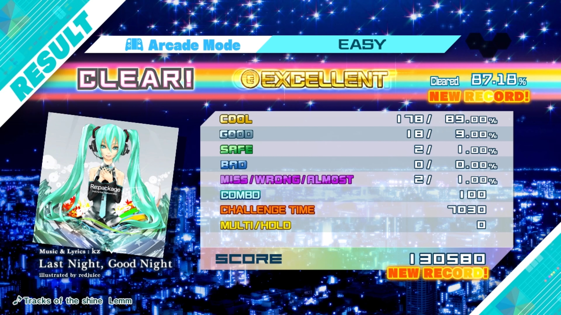 checked settings : Last Night, Good Night | Easy / Arcade : ok