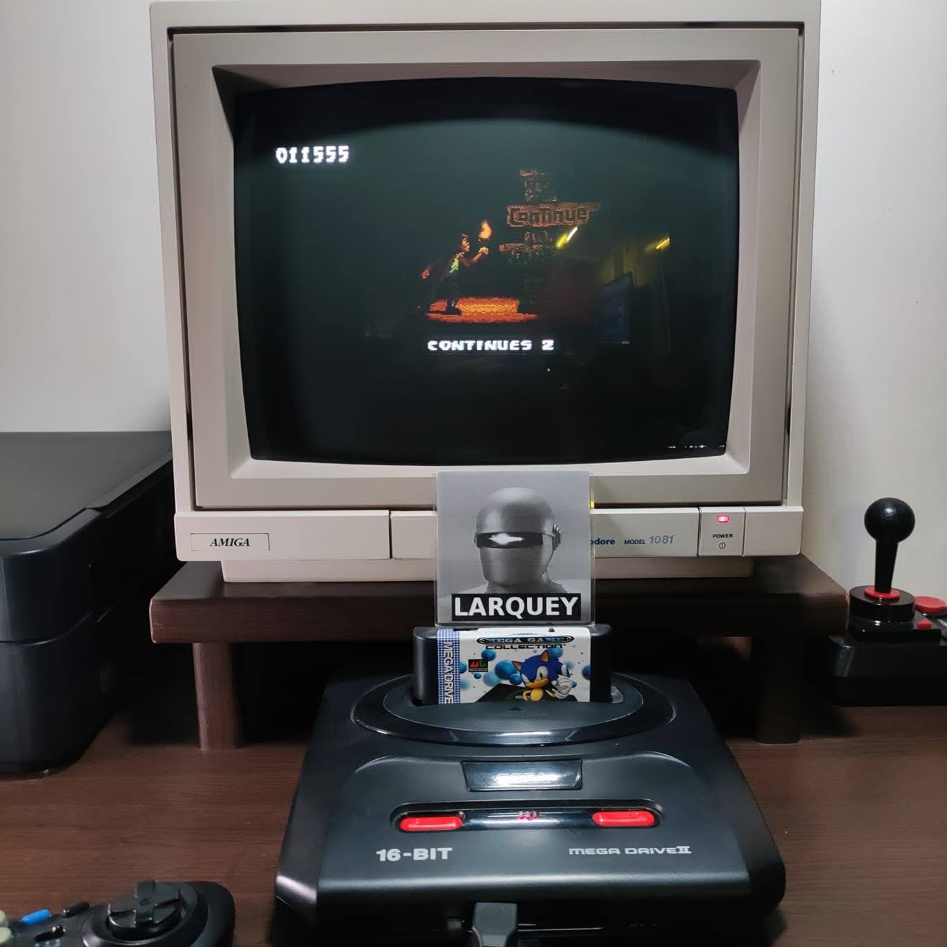 Hardware and boot up shown. "Difficulty: Hard" can be seen at 0:40. Score checks out. Yes.