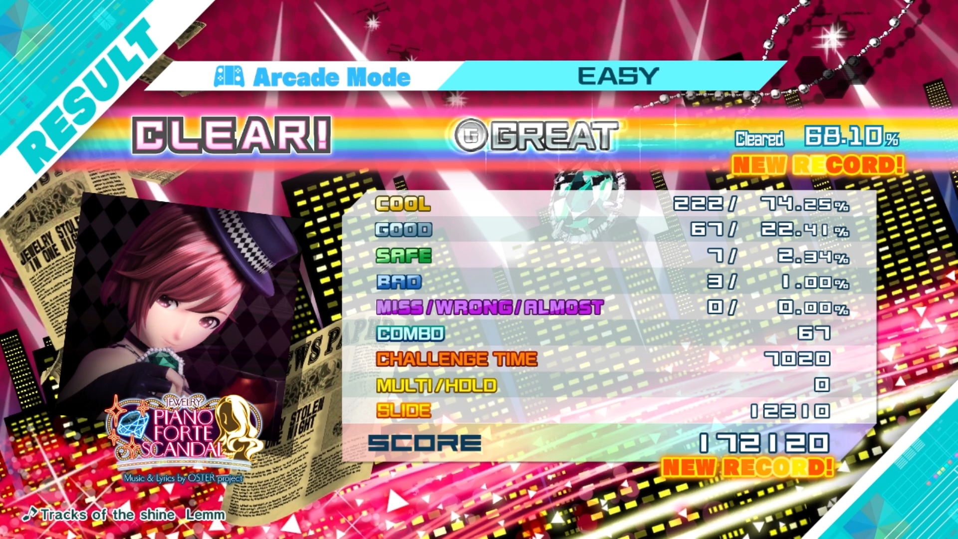checked settings : Piano × Forte × Scandal | Easy / Arcade Mode : ok