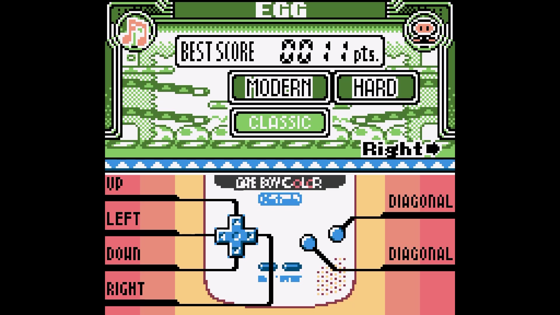 Emulation checked, game checked, Egg checked, Modern / Hard checked, gameplay checked, score checked.