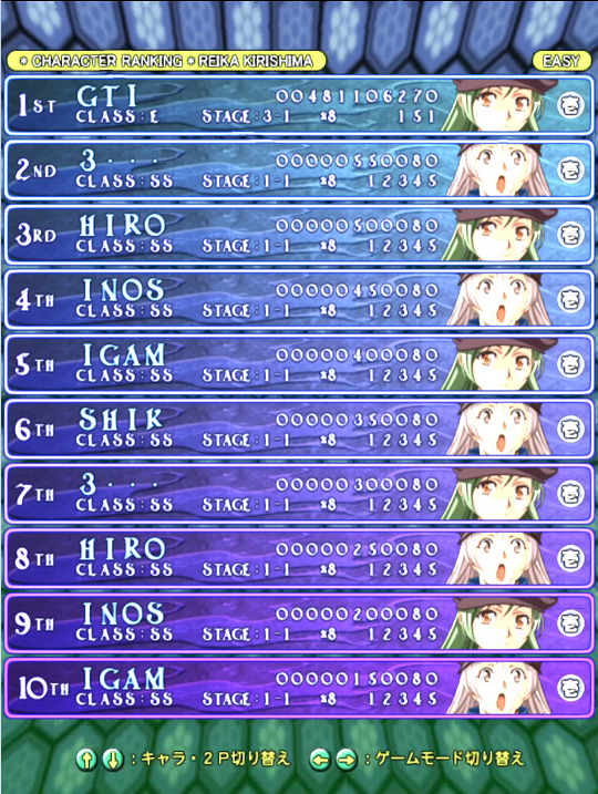 Play the game in 1 player mode with default settings. (No DIPs to show; You can see the settings on the title screen) Life Charge: Rank 3 Difficulty: Rank 3 C-Button Rapid: OFF Choose any character you want. |