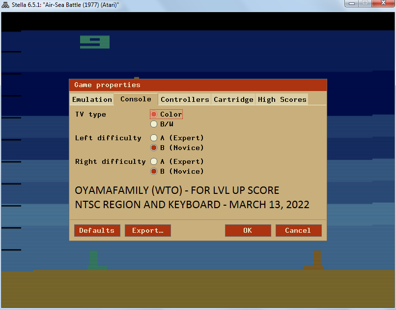 Left difficulty switch setting may be in any position at any time. Right difficulty switch setting must remain in the B/Novice position throughout gameplay. No use of trainers, cheats, saved game files, auto-fire (when not default present in-game), emulator save states, or other emulator advantages. No use of code modifications that give the player an advantage over other players. No continues. It is discouraged and may lead to voters not accepting your score to: - excessively point farm - use glitches or other game exploits |